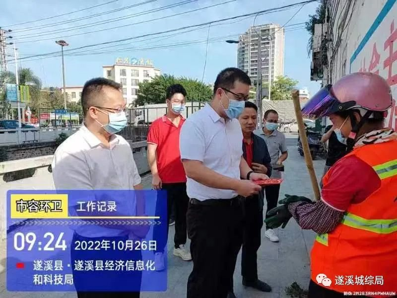 10月26日上午,遂溪縣人民政府副縣長(zhǎng)揭瑯看望慰問一線環(huán)衛(wèi)工人,代表縣委、縣政府向廣大環(huán)衛(wèi)工人送上深切關(guān)懷和節(jié)日祝福,與他們共慶廣東省第二十九個(gè)環(huán)衛(wèi)工人節(jié)。縣城市管理和綜合執(zhí)法局局長(zhǎng)胡建縣、縣環(huán)衛(wèi)處主任許明濤、萬家美公司相關(guān)人員陪同慰問。