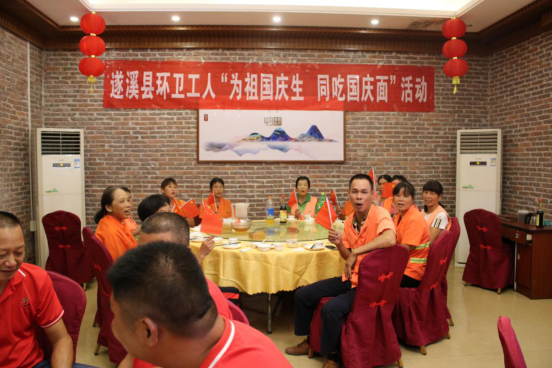 為慶祝中華人民共和國(guó)成立70周年,9月29日中午,縣環(huán)衛(wèi)處和萬(wàn)家美公司舉行遂溪縣環(huán)衛(wèi)工人“為祖國(guó)慶生,同吃國(guó)慶面”活動(dòng)??h創(chuàng)文辦、縣環(huán)衛(wèi)處、萬(wàn)家美公司領(lǐng)導(dǎo)與30多名環(huán)衛(wèi)工人同吃“國(guó)慶面”,一起祝福祖國(guó),歡度國(guó)慶。
