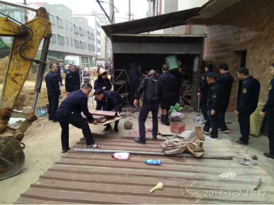 在前期與居民開展通知溝通工作后,于1月9日,城監(jiān)大隊聯(lián)合遂城鎮(zhèn)、公用事業(yè)局等單位,出動叉車、切割機等車輛和工具,依法對縣城湛川東路范圍內的7起占道鐵棚進行拆除,為湛川東路改造工作做好前期準備工作。
