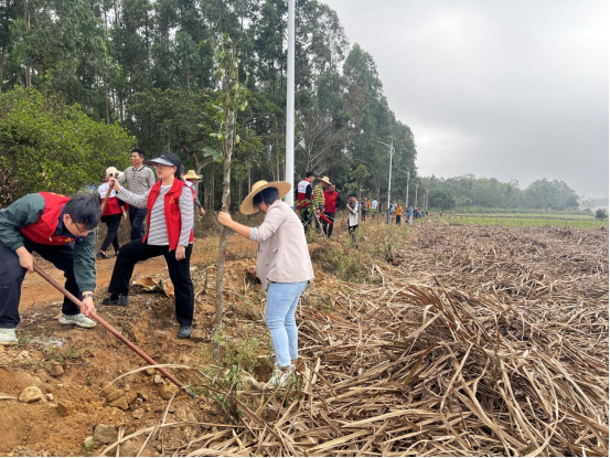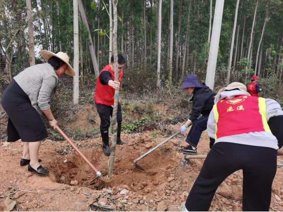 在邦機(jī)村、石塘村等各活動現(xiàn)場,呈現(xiàn)出一片熱火朝天的景象。大家熱情高漲,紛紛手持鐵鍬、鋤頭等工具迅速投入到勞動中。在植樹過程中,大家互相配合,分工明確,秩序井然。有的負(fù)責(zé)運(yùn)苗扶樹,小心翼翼地將樹苗搬運(yùn)到指定位置,扶正樹苗使其筆直挺立;有的專注于挖坑培土,揮動鐵鍬,一鍬一鍬地挖出樹坑,再仔細(xì)地將土培在樹苗根部;還有的忙著踩實澆水,確保樹苗能夠穩(wěn)穩(wěn)地扎根在土壤里,吸收充足的水分。