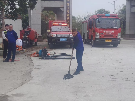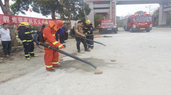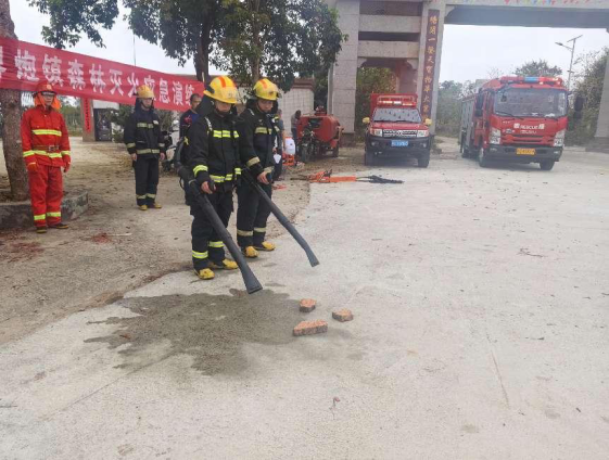 演練前,總指揮長許理乾作動員講話,講解了此次演練活動的流程、目標(biāo)、要求,并下達演練開始的命令。現(xiàn)場指揮長陳志南指揮界炮鎮(zhèn)兼職消防隊于現(xiàn)場開展肩背式水力滅火器、風(fēng)力滅火機、二號工具(打火拖把)等的基本操作演示,村級滅火小隊在消防員的指導(dǎo)下進行了各種滅火工具的實操。
