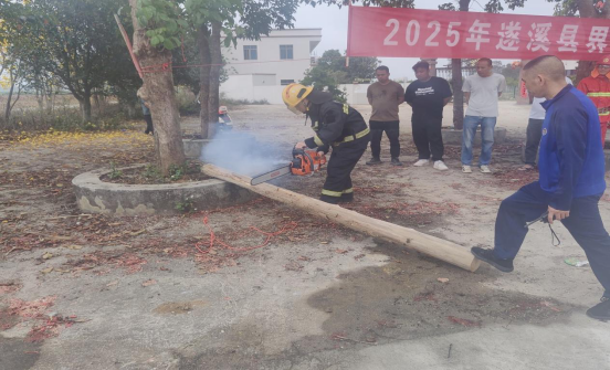 鎮(zhèn)兼職消防隊演示電鋸的使用