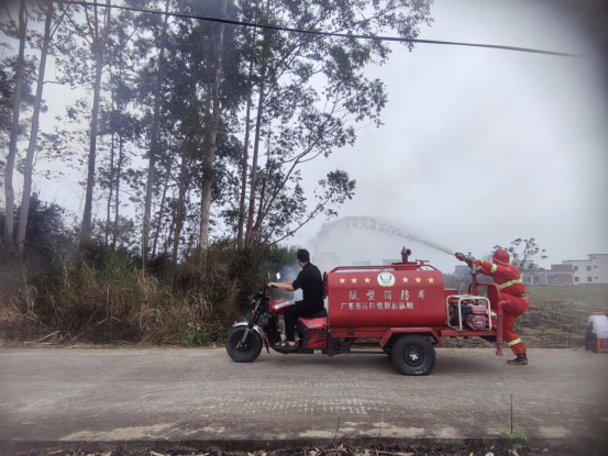 村級撲火隊使用微型消防車進行火災(zāi)撲救工作