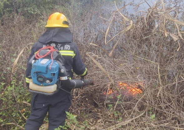 村級撲火隊采用肩背式水力滅火器進行滅火