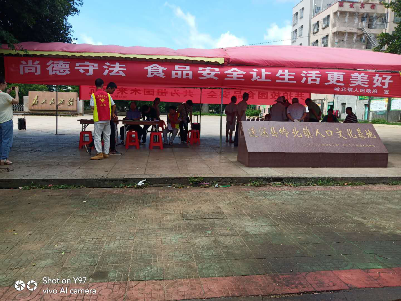 為增強(qiáng)我鎮(zhèn)人民群眾的食品安全意識(shí),讓食品安全理念深入民心,7月4日上午,嶺北鎮(zhèn)食安辦聯(lián)合鎮(zhèn)市場(chǎng)監(jiān)督管理所和嶺北鎮(zhèn)共青團(tuán)在嶺北鎮(zhèn)金嶺廣場(chǎng)開(kāi)展了主題為“尚德守法,食品安全讓生活更美好”的食品安全宣傳周活動(dòng)。嶺北鎮(zhèn)黨委副書(shū)記、市場(chǎng)監(jiān)督管理所所長(zhǎng)舒劍鋒、嶺北鎮(zhèn)副鎮(zhèn)長(zhǎng)吳景如及鎮(zhèn)政府、鎮(zhèn)市場(chǎng)監(jiān)督管理所、鎮(zhèn)共青團(tuán)部分干部參加了活動(dòng)。