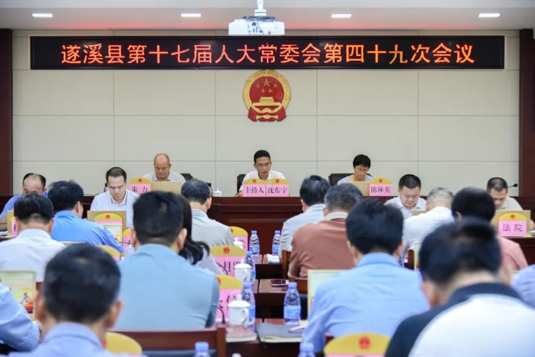 6月30日,遂溪縣第十七屆人大常委會舉行第四十九次會議。縣人大常委會黨組書記、主任沈東宇主持會議。縣人大常委會副主任陳林英、朱力等23名組成人員出席會議。