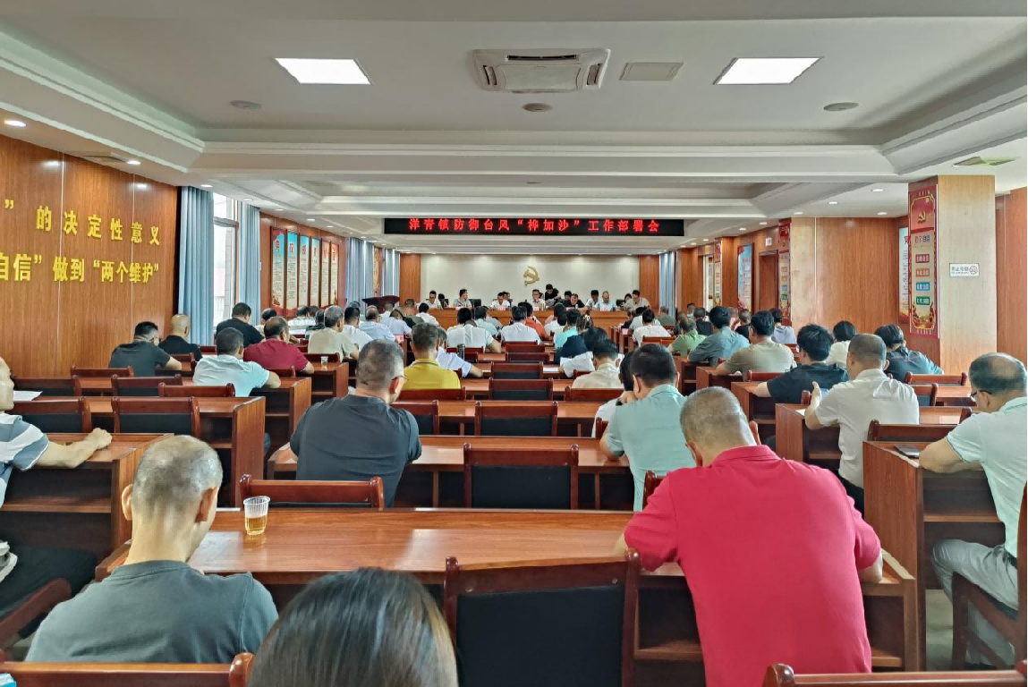 圖為洋青鎮(zhèn)召開防御臺風“樺加沙”工作部署會