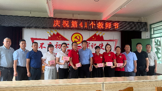 在第 41 個教師節(jié)來臨之際,9 月9日下午,遂溪縣政協(xié)副主席何日保帶隊赴界炮鎮(zhèn),親切看望慰問一線教師,向他們 致以節(jié)日的誠摯問候和美好祝福。界炮鎮(zhèn)黨委書記梁李興、 鎮(zhèn)長吳國軍及班子領(lǐng)導(dǎo)和教促會領(lǐng)導(dǎo)及各學(xué)校教師代表等參加此次活動。
