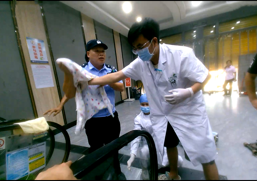 在民警、消防救援人員、醫(yī)護(hù)人員、電梯公司及商場管理人員的協(xié)同配合下,被困小孩于16時許被成功救出,隨后第一時間被迅速送往遂溪縣第二人民醫(yī)院檢查治療。