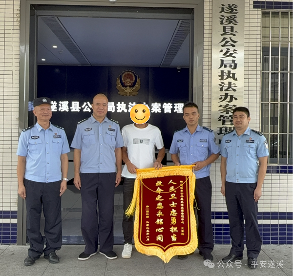 8月25日11時,林某強先生帶著一面印著“人民衛(wèi)士忠勇?lián)?dāng) 救命之恩永銘心間”的錦旗專程來到執(zhí)法辦案管理中心親手將錦旗送到黃金權(quán)手中。緊緊握住他的手反復(fù)道謝言語間滿是感激,從危急時刻的挺身而出到救助后的默默離開黃金權(quán)用行動詮釋了公安輔警“人民至上、生命至上”的初心更展現(xiàn)了新時代公安隊伍為民服務(wù)、勇?lián)姑牧己眯蜗笞尅叭嗣裥l(wèi)士”的溫暖底色在平凡瞬間熠熠生輝。