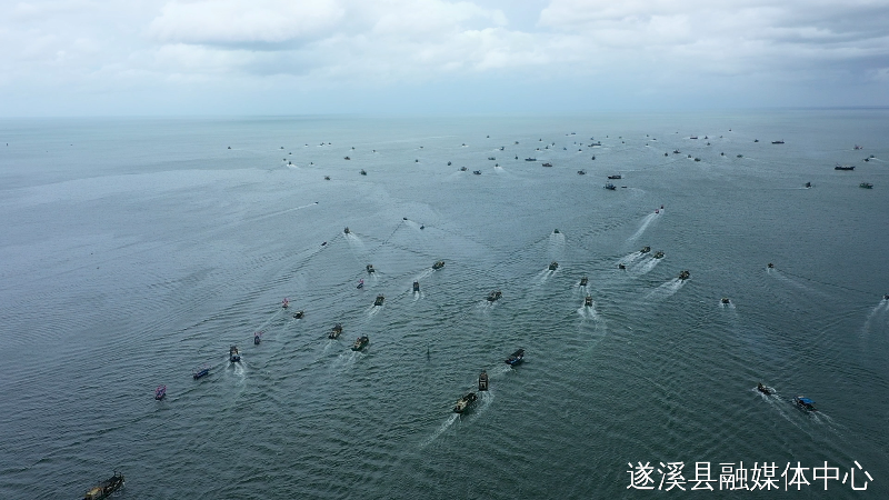 朱銳、蒲火元、梁成章、崔凱旭等領導嘉賓共同吹響開漁的號角。隨著開漁的號角吹響,遂溪縣五千余艘漁船如離弦之箭,踏浪遠航,奔赴深藍,開啟新一年的逐“鮮”之旅。