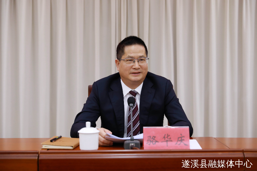 遂溪縣委書記駱華慶傳達(dá)學(xué)習(xí)黨的二十屆四中全會精神并講話,遂溪縣委副書記、縣長張洋主持會議。