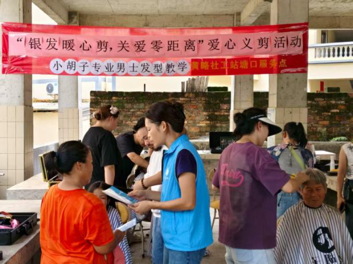 為深入關(guān)懷轄區(qū)老年人的生活需求,傳承和弘揚尊老、愛老、助老的傳統(tǒng)美德,傳遞社會溫情,同時為了讓老年群體更直觀地理解民政惠民政策,7月10日,黃略鎮(zhèn)社工站塘口社工點的社工在顏村村委會舉辦了“銀發(fā)暖心剪,關(guān)愛零距離”愛心義剪及政策宣傳活動。此次活動邀請了專業(yè)的理發(fā)師為老年人提供免費的理發(fā)服務(wù),以實際行動傳遞了溫暖與關(guān)懷。