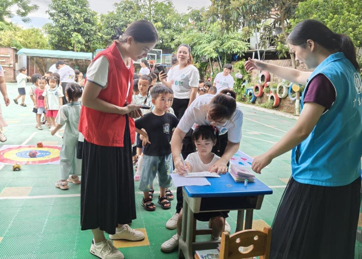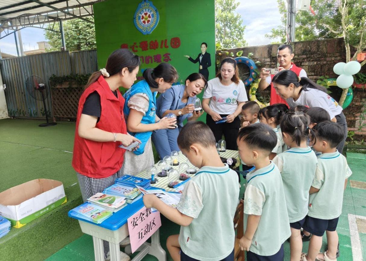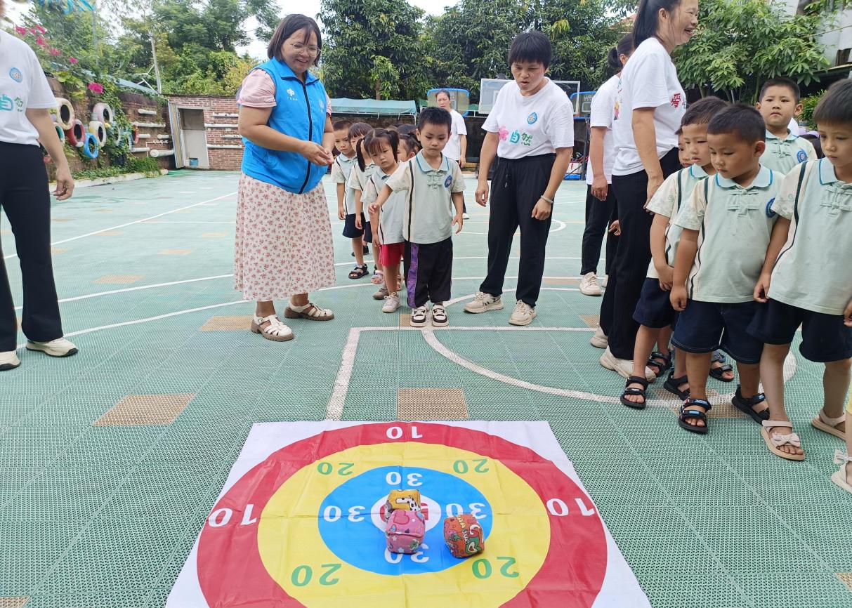 在互動環(huán)節(jié)中,100余名幼兒園大班學(xué)生在教師和黨員志愿者的引導(dǎo)下,有序參加五個主題鮮明的攤位活動,以沉浸式互動為節(jié)日注入溫暖底色。鎮(zhèn)禁毒辦工作人員在安全教育互動區(qū)為孩子們講解防毒、防溺水、防詐騙等安全知識,通過模型展示和宣傳冊發(fā)放增強(qiáng)幼兒的自我保護(hù)意識。黨員志愿者在感恩教育互動區(qū)指導(dǎo)孩子們制作教師節(jié)賀卡,表達(dá)對老師的敬意與感謝。心愿直通服務(wù)區(qū)內(nèi),孩子們在老師和志愿者、社工們的幫助下用畫筆描繪心愿并投入“童心微心愿箱”,這些微心愿將由黨員干部及家長后續(xù)認(rèn)領(lǐng)落實(shí)?!皝G沙包”和“跳房子”傳統(tǒng)游戲區(qū)域歡聲不斷,孩子們在活動中鍛煉身體、培養(yǎng)團(tuán)隊(duì)意識,展現(xiàn)出蓬勃向上的精神風(fēng)貌。