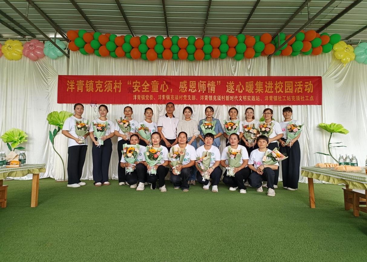 活動結(jié)束后,黨員志愿者、社工為每位學(xué)生分發(fā)精美禮品孩子們喜悅之情溢于言表。鎮(zhèn)黨委委員許芬芬、克須村黨支部書記樊進(jìn)庭向教師們獻(xiàn)上鮮花,向辛勤耕耘的教師們致以崇高敬意,送上真摯的節(jié)日祝福。
