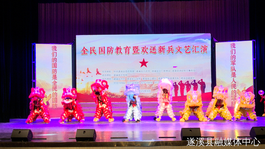 《群獅賀盛會》的上演拉開全民國防教育暨歡送新兵文藝演出的序幕。整場演出精彩紛呈,力量與美感交織相融:部隊官兵帶來的武術表演《武動山河》、技藝表演《烽火戰(zhàn)旗》震撼登場,盡顯剛勁風采;《龍吟醒遂》、《為你榮耀》等舞蹈、歌唱節(jié)目溫情上演,傳遞動人情懷。剛柔并濟的精彩呈現,不僅充分激發(fā)了新兵投身軍旅的堅定決心,更進一步提升了全民國防意識。